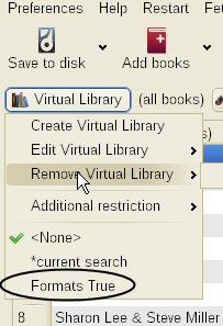 I can't check my original virtual library because I recreated it. What it had in the search area was "Finished Library" which in theory pointed to a saved search called "Finished Library" I don't recall if I clicked it or not. @chaley See attached, It doesn't matter to me one way or the other, but as a user of the restrict to feature for a long time I expected all of the "additional restriction" items to be translated directly as virtual libraries in the new setup. Since I was using them as a top level restriction. Update: Compose my thoughts and three other messages pop-up. Further update: I deleted some Saved searches, but those Saved searches were not removed from the Additional restriction list. Is this list a history type list with a finite number allowed before they roll off the end? Last edited by DoctorOhh; 04-13-2013 at 12:43 PM. |