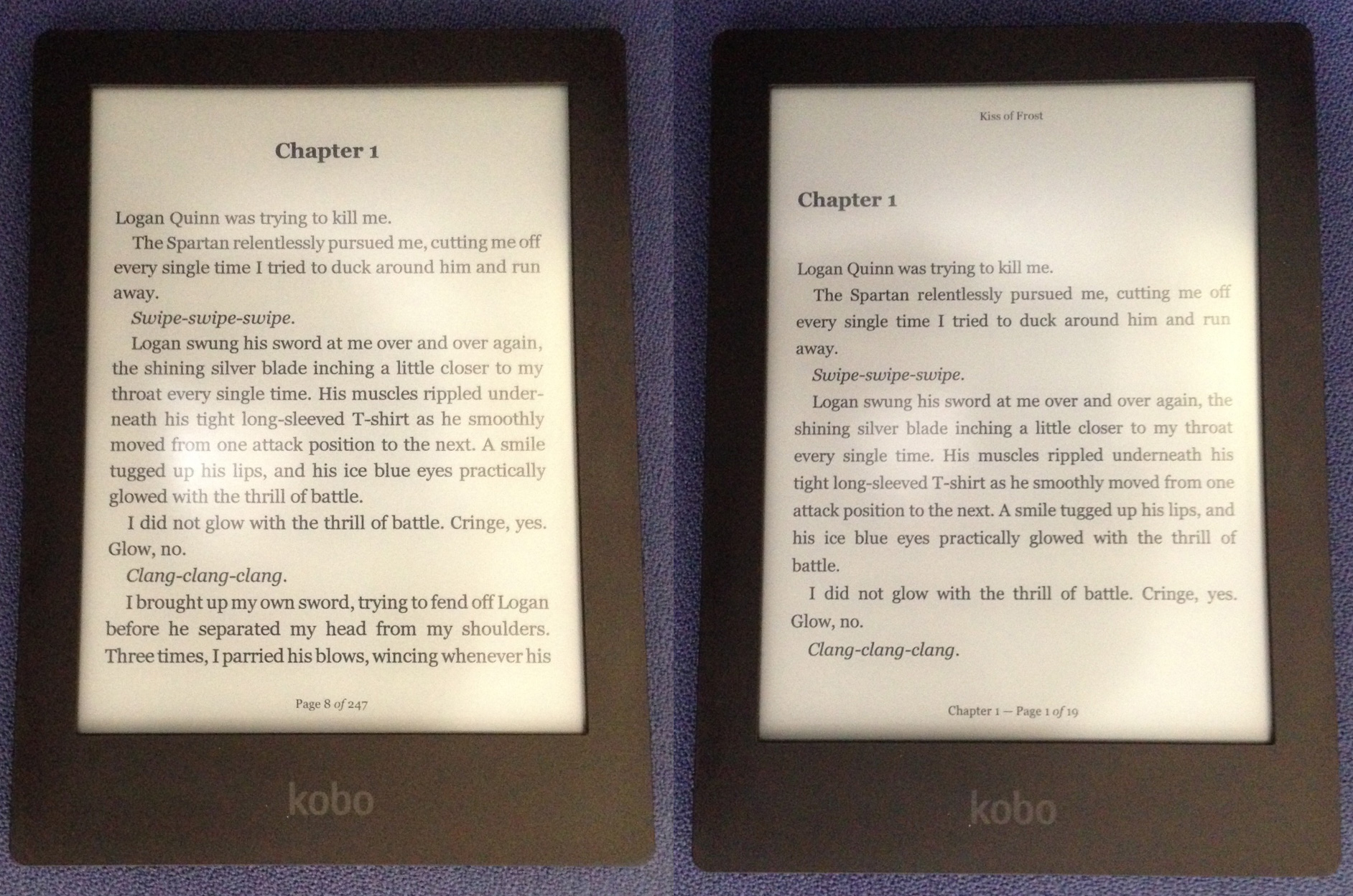 Same book. ePub (as is from Kobo, not messed with) and kePub downloaded directly to the device. Both are perfectly readable, although a quick flip through part of the ePub shows it'll need to be tweaked for widows & orphans. Last edited by AnemicOak; 04-29-2013 at 05:02 PM. |