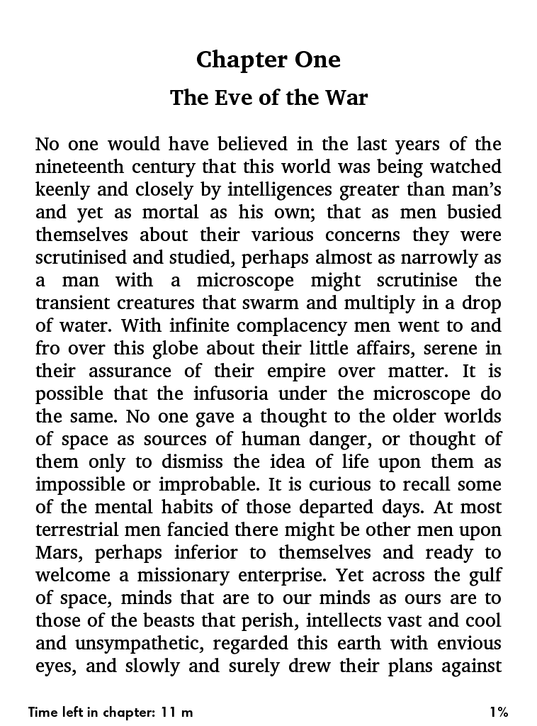 I'm going to eat a bit, and then I'll put your War of the Worlds v4 onto the Kindle Paperwhite without changing any of the Paperwhite's settings. Then I'll post you a screenshot of a page with a chapter heading, and one without.
