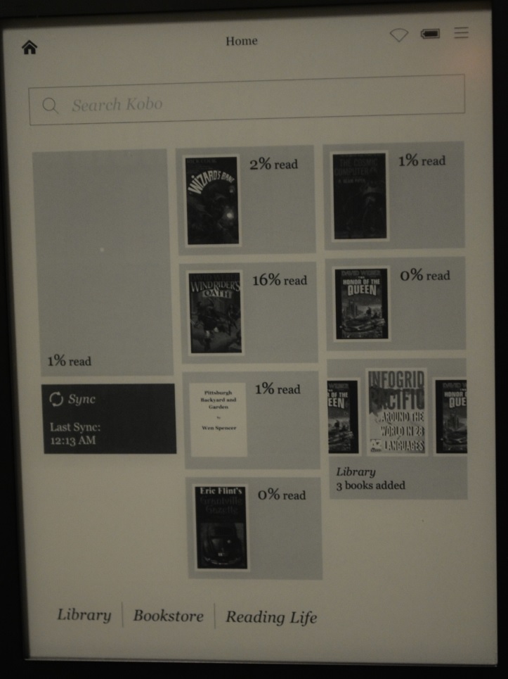 I bought a Kobo Glo (most of the bookshops sold only the PW) about six weeks ago after really looking for it just because it displayed EPUBs and I did not want MOBIs. It replaced an old Sony PRS-505. I remarked, with philosophy, some fuzzy things: "long paragraph bug"..., not too precise superscript display, random access to endnotes, woefully unaccurate slider to go to another page, psycho-rigid sideloaded font-names, allergy to embedded fonts... I do not add to this some genuine formatting defects I spotted on kepubs. I thought they were balanced by some pretty good ideas: nice light display, fonts, line-height, margins optional settings, dictionaries. Not knowing Kobo at all, I have been an optimist. It lasted till 2.5.2. There are few things about which I really care. The second most important thing for me after the EPUB standard is the quality of the page display. That's why I hardly stand the big space taken by the page count display. I can't accept that Kobo decided for me to add a title display. The direct consequence will be that for now on, I will stop syncing to Kobo as long as we do not get an official option about it. No access to shop of course. I am ready to keep 2.5.1 as long as my Glo. After all, I kept my Sony four years and a half without updates... Kobo, do you hear me? No shop. Now my Glo complains and tells me: "Your wishlist is empty." Ah, ah, this time, I do not care. Last edited by roger64; 05-18-2013 at 07:30 PM. |