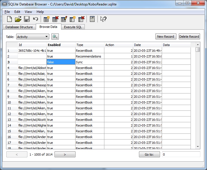 The other David pointed to SQLite Database Browser, but I have been using a Firefox plugin. It is SQLite Manager. The main reason I started using it for the Kobo database was because I had it installed. But, it works very well, and I usually have Firefox opened, so there is little overhead.