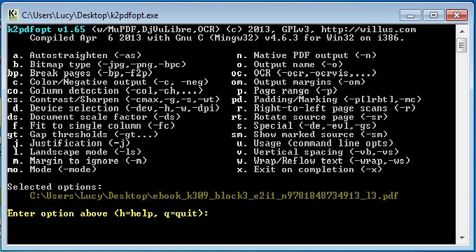 Hi willus, thanks so much for this AWESOME tool! I love it and am trying to get the pdf to the most comfortable reading view (whereas pre-discovering your program I was simply trying to make the pdf useful). I'm having trouble changing the size of the body text. I want to keep the pdf in native mode I tried: -n -odpi 400 (only the headers changed size) -mode fw -ls- -odpi 400 (nothing) Is there something else I should be doing instead? Thank you! |