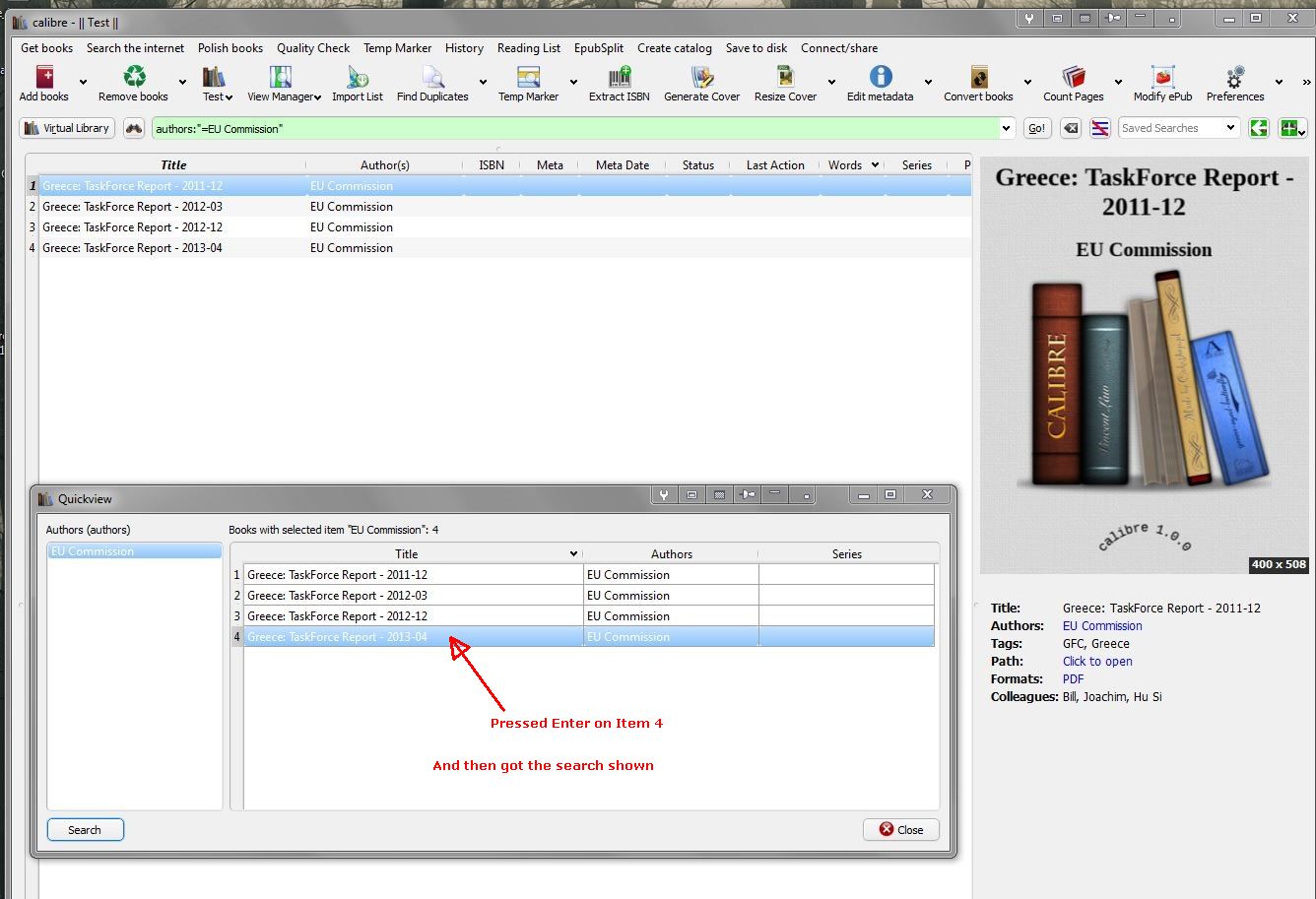 • If you double click a book in the Quickview panel it will be made current in the Book List and the Details will change you can see the Tags