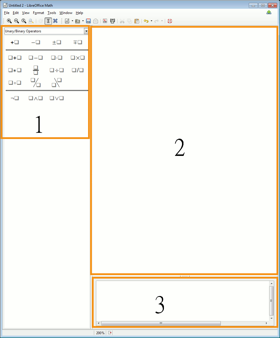 Step -1: The Source This tutorial will be using pages 160, 174, and page 180 from "An Outline of International Price Theory" by Chi-Yuen Wu: PDF: http://library.mises.org/books/Chi-Y...e%20Theory.pdf I have attached an EPUB at the end of the tutorial which includes the final text + formulas for these three pages. Step 0: Very basics of LibreOffice Math I have marked three sections in the image, showing the Math UI: Section 1: This is where you use buttons to create the formula. The dropdown menu allows you to change categories to many many different types. Side Note: Press a button and see what it does! Try to see if you can go through the menus and make a "square root". Section 2: This is where the formula is displayed. Section 3: This is where the "code" goes to create a formula. Pressing a button in Section 1 will generate some "code" in Section 3. You will then have to replace the placeholder text with your actual numbers/letters. See: Now replace the first <?> with 2, and the second <?> with 2. (Or you could just type "2 + 2" directly into Section 3). Code: