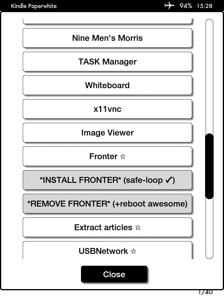 Native Kindle Menu for Paperwhite (1 & 2) and Touch