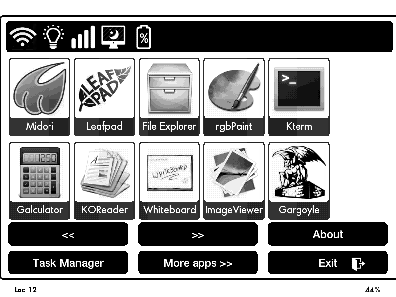 KINDLE MENU APP BUNDLE: - Collection Manager - by Ixtab - Explorer by Anakod - Galculator by Twobob - Gargoyle by Baf - JBPatch by Ixtab - KindleGallery by Aeris - KindleNotes by Aeris - Kindle Menu (main app) by Aeris - Kterm by Baf - Leafpad by Baf - Rgbpaint by Twobob - KindleTask by Aeris - KindleReminder by Aeris APPS THAT YOU CAN DOWNLOAD SEPARATELY: - Midori: a great web browser for Kindle, download it here - KOReader: the best pdf reader for Kindle, download it here These apps are simply too big to be embedded in the package. Guide: How to add your custom app launcher to Kindle Menu: Spoiler: