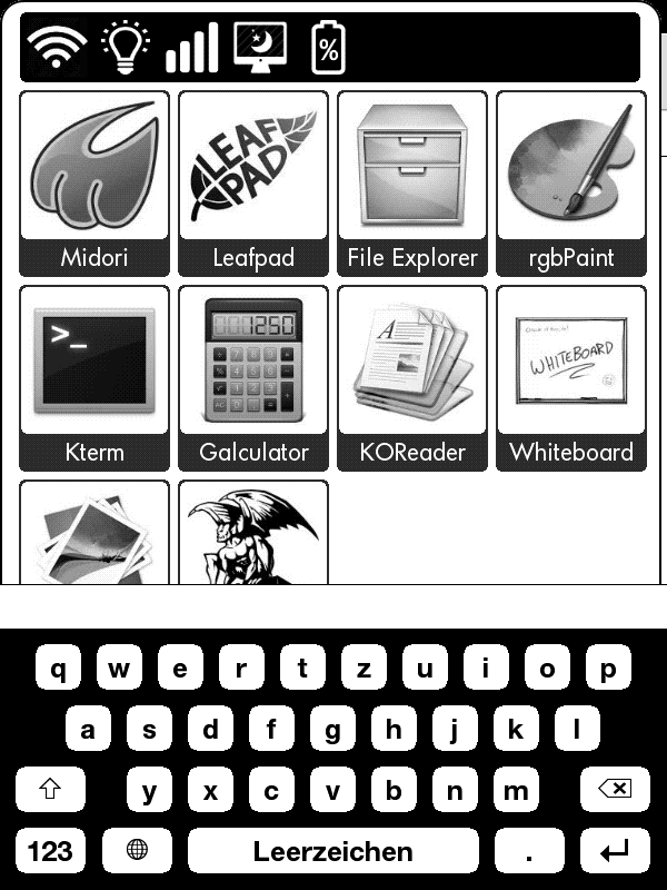 One issue though: The keyboard is shown at the bottom when I invoke kindlemenu. See attached screenshot. The keyboard disappears if I press the home button or touch the toggle WiFi or toggle screen saver buttons at the top. |
