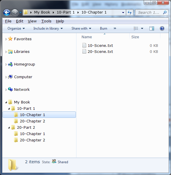 I think I suddenly see where this went wrong. You think you need to type up a folder structure like that in the first post? No, you don't need to. Maybe I should have posted a picture right away. I actually mean to create actual folders (see attachment), and the text files contain just text, no markup whatsoever. You type your story into the text files using whatever editor you want.