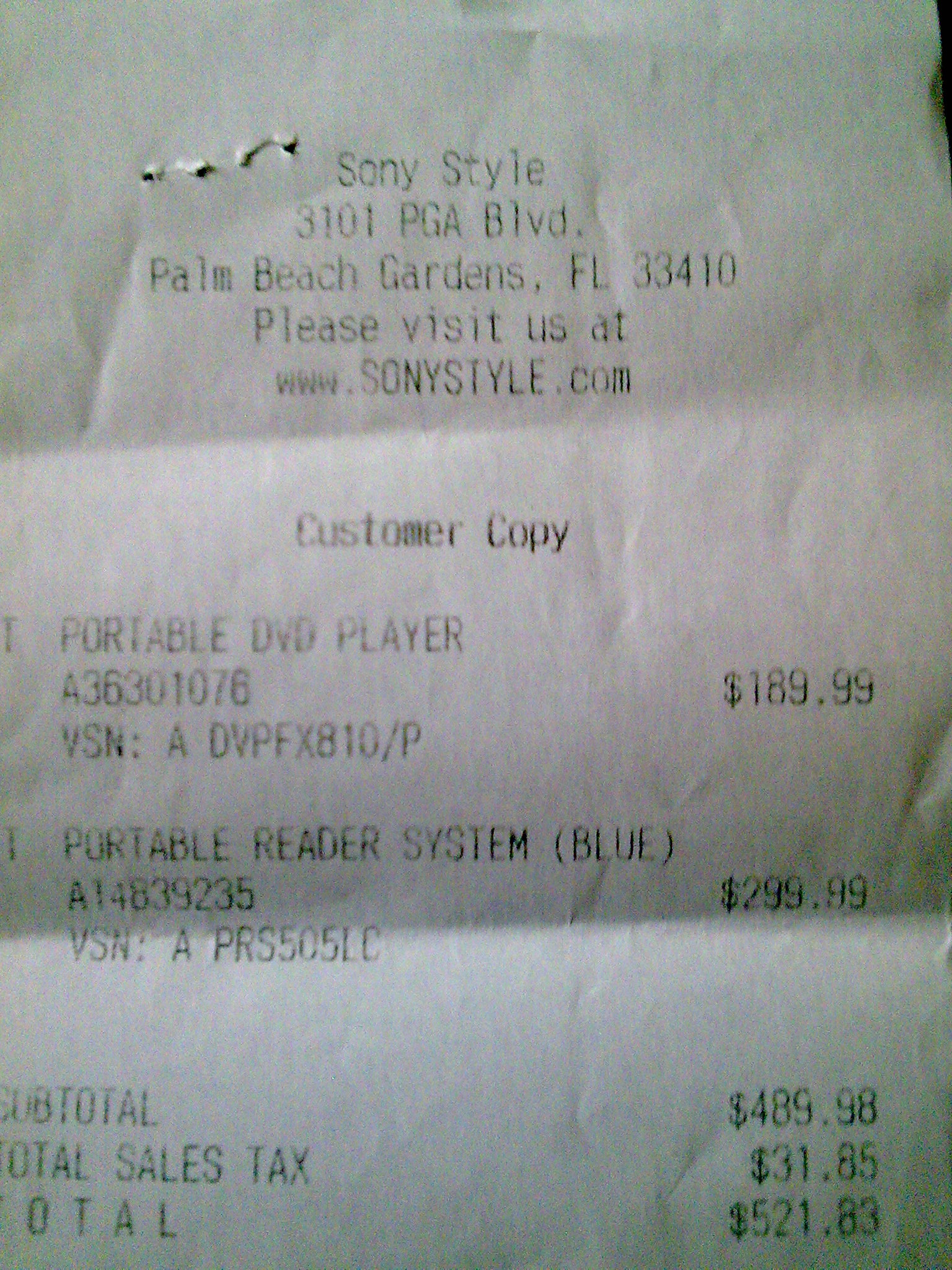From the Sony Connect store, DRM BBeB Click - Bill Tancer ($10) Freakonimics - Steven D. Levitt and Stephen J. Dubner ($10) Change your Brain, Change your Life - Daniel G. Amen ($10) Personal Days - Ed Park ($10) Per Pilotbob, your mileage may vary with these books. I will leave them on if you wan't to read them before you register, or you may not use the sony connect store at all. Along with my collection of Manga, Manga2Ebook + PDFrastafarian Ruroni Kenshin - Nobuhiro Watsuki (Entire Series, 4000+ pgs) Korashiy Ichi - Hideo Yamaoto (Entire Series, 1000+ pgs) Battle Royale - Koushin Takami (Entire Series, 2000+ pgs) I will de-authorize the device so you can register it in your name, but I will leave the DRM's Sony Connect books on for your to enjoy. If you use Calibre you can upload anything you want without losing the books. This has also been updated to the latest firmware which supports SDHC cards. So I will be including a PQI 8GB SDHC Card ($35) (At 2MB Avg per book, thats about 4000 Books give or take) Also as a one of a kind offer, A friend of mine made a custom HOLLOW BOOK, out of a thin Journal that perfectly fits the PRS-505. It is felt lined for protection and is barely thicker than the actual device itself adding only minimal heft. This is a one of a kind item included with this. All the accesories with the exception of the USB Cable (which I had to use to upload the Sony BBeB books is still in unwrapped new condition) I am fully Paypal verified with a POSITIVE feedback rating, and such I will only accept Paypal from buyers with the same. I also accept bank transfers through Bank of America if you have an account. South New Jersey residents, especially those near the Jersey Shore (Atlantic City) are are welcome to check this item out before you buy. I am sorry but if you are an international buyer I only accept wire transfers or money orders, or after your Paypal funds have cleared and I have withdrawn it. This is for my safety. And of course my phone number and contact information will be available for any serious buyer. Selling price is $250 OBO with the buyer in charge of shipping fee's (Buyer's Choice). I will be throwing this up on Craigslist and the Ad space at my local Border's this week if I get no offers. Thanks for looking. Last edited by chengster; 10-13-2008 at 02:02 PM. Reason: to appease "pilotbob" |