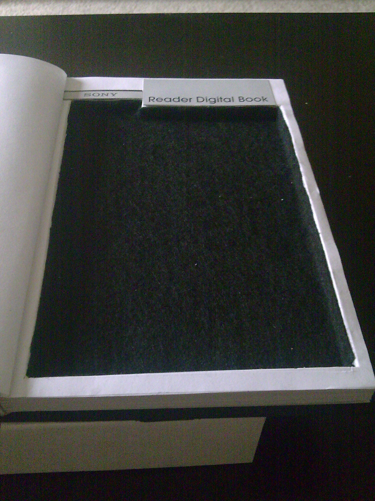 Also as a one of a kind offer, A friend of mine made a custom HOLLOW BOOK, out of a thin Journal that perfectly fits the PRS-505. It is felt lined for protection and is barely thicker than the actual device itself adding only minimal heft. This is a one of a kind item included with this.