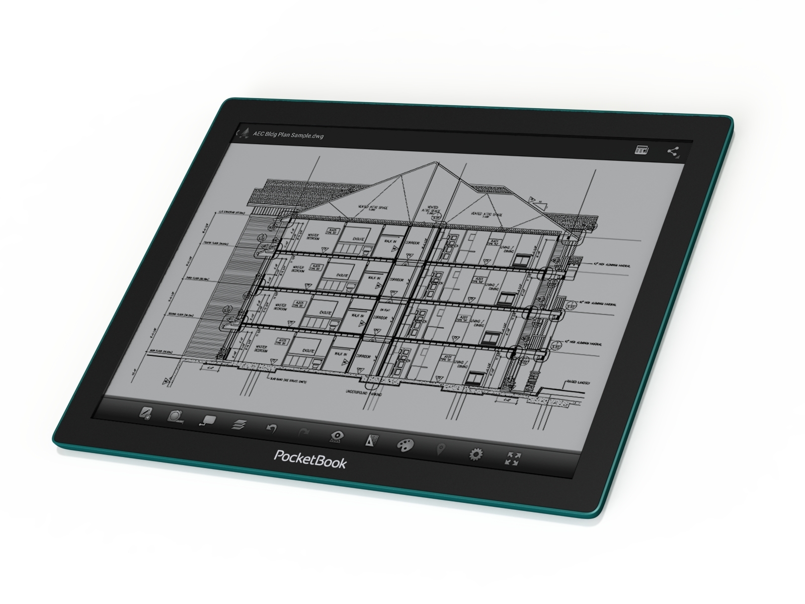 Pocketbook CAD Reader Specs http://www.pocketbook-int.com/en/pro...ook-cad-reader Specifications: Anzeigen E Ink® FinaTM, 1600 x 1200 px, 13,3'' Screen material Glas Touchscreen Multitouch, kapazitiv Vordergrundbeleuchtung - Shades of gray 16 Processor Dual-core 1GHz (Freescale iMX.6 Dual-Lite) Operative memory 2 GB Flash memory 16 GB (der für den Nutzer verfügbare Speicher kann variieren) Accumulator Lithium-Polymer, 8000 mAh Wireless connectivity Wi-Fi (802.11 b/g/n), 3G WCDMA/UMTS USB-interface Micro USB, USB, mini HDMI Kartenart MicroSD card slot, Push-Push type, up to 64GB G-sensor/Accelerometer + Audio Out 3,5 mm Speakers + Camera - Formats of audio MP3 Formats of video - Supported languages Android Language list Casing material plastic Farbe Smaragd, edlen grau Abmessungen 309 x 241 x 9,6 mm Gewichtung 700 g Developer Obreey Products |