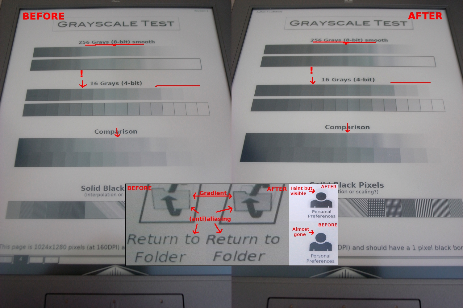 (It is also separate from the refresh "issue" which is most obviously when writing: the screen slowly turns gray-ish, but as soon as you refresh it (by pulling up a menu for example) it's back to crisp black & white.)