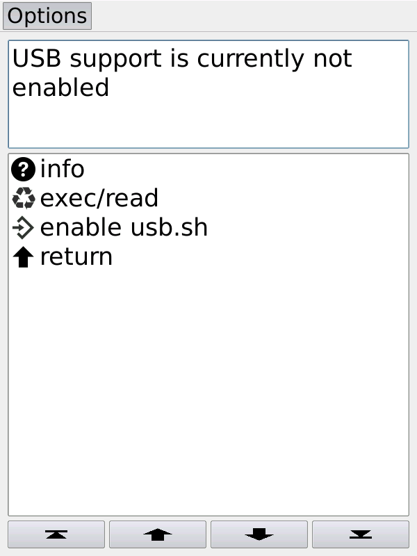 The next entry is "start nickel." This will start the normal Kobo user interface. You can return to the menu by opening exit_nickel.png in the library. The next three entries are "start kobolauncher, "start vlasovsoftlauncher", "start koreader," provided they are detected on the device. The next entry is "usb." This will open a new menu. You will be informed that "USB support is currently not enabled." Press "enable usb.sh" wait until the message changes to "USB support is enabled" and connect to uhesb cable to the computer (actually you can connect already as a first step or second). After you eject the reader and disconnect the cable, press "disable usb.sh" Please read the "info" for some details. In this menu you can see a feature that you will meet in other sub menus too, namely "exec/read." By pressing this entry you can toggle between execution mode and reading mode. In execution mode script files will be executed (e.g. enable usb.sh and disable usb.sh), in reading mode the text of this scripts will be displayed. You can see which mode is currently active by the icon. The question mark icon indicates reading mode, the arrow icon indicates execution mode. "Return" will bring you back to the main menu (home) The next entry is "scripts." I will say something about it at a later point. The next entry is "sleep." Press it to make the device sleep. There is no special sleep screen, only the screen freezes. Wake the device up by sliding the power slider. The next entry is "reboot." Again no special reboot screen. Just wait some seconds until the device is rebooted. The next entry is "power off." A simple power off screen is presented. Currently, a short text is displayed. You can edit the content (.kobo\kbmenu\txt\poweroff_info.html). For the sub set of accepted html tags see here. Last edited by tshering; 04-04-2014 at 04:11 PM. |