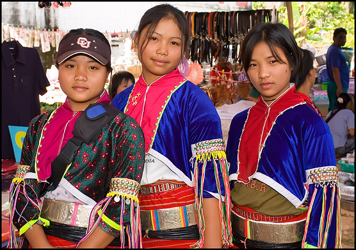 Probably tobacco. But this is Thailand, and she's an Akha hilltribe woman who lives waaay back up in the mountains, so it could be just about anything from ganja to corn silk! The Akha women all wear their traditional costumes all the time, as do most of the women of the various hilltribes, even when coming down out of the mountains into town to go shopping. The younger women tend to mix traditional with more modern, as the Paduang girls in this attachment.