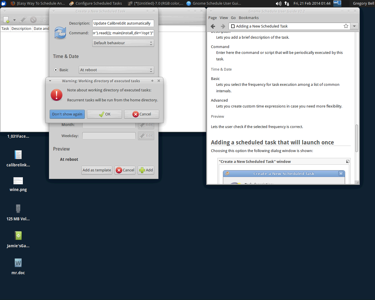 so +1 on figuring out the right task scheduler.Apparently, on Ubuntu you should be using Code: