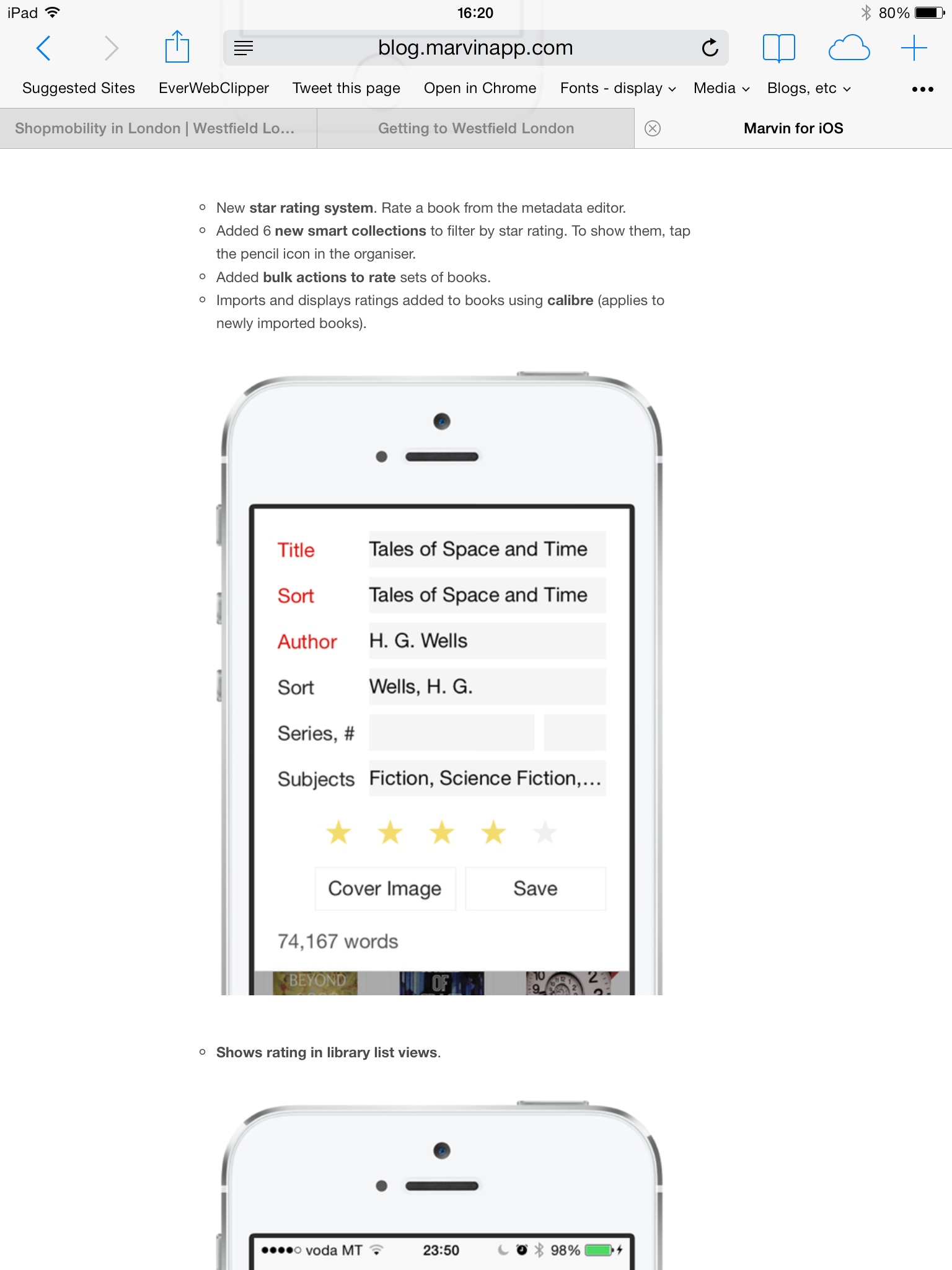 The Marvin blog mentions Star Rating being available through the metadata tab, but I don't see this on either my iPhone or iPad - Marvin is at the most recent version.