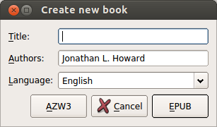 Popup to choose title, author,language, and... Three buttons: AZW3, Cancel, EPUB. Guess which one to click. |