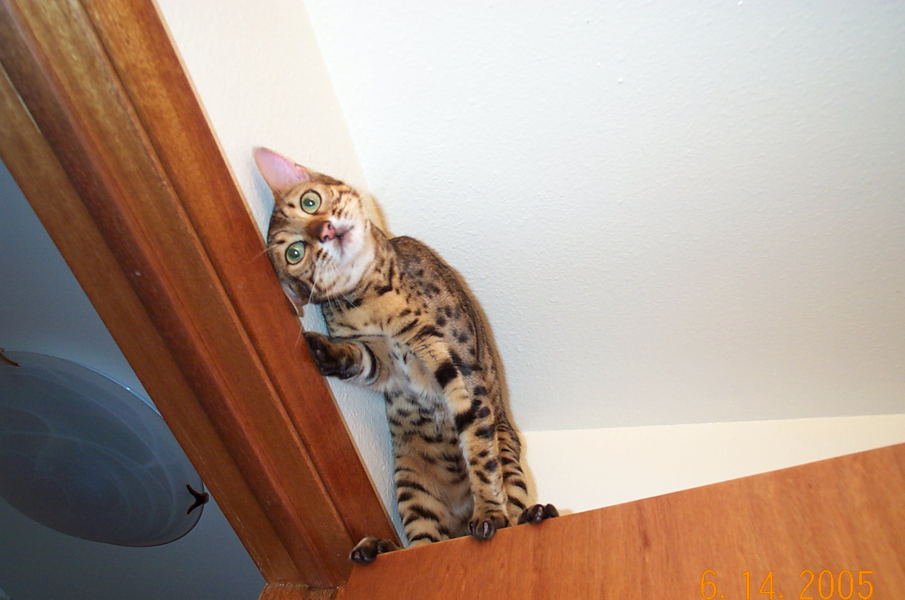 And yes, the girl is standing on top of our bathroom door and you see the hallway light fixture on the other side of the doorframe. |