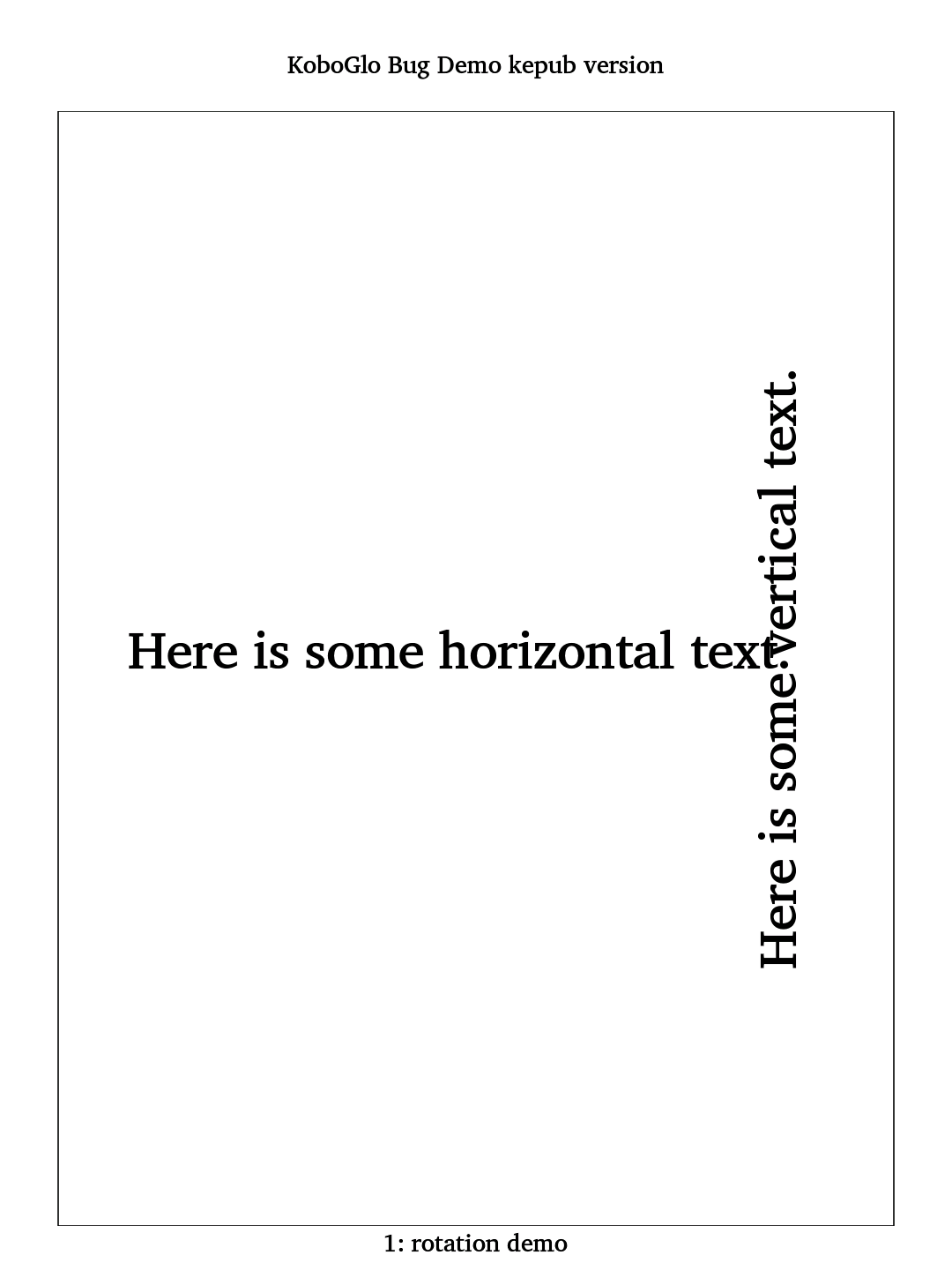 It's definitively an Adobe Digital Editions bug. I downloaded it, installed and opened your testcase, the text is completely messed up. Probably the other ereader companies uses the ADE SDK to workaround its bugs. Try to report it to the ADE forum. I suggest you to not mention Kobo, or you'll be ignored. Report it simply as an ADE bug and link the testcase. In the end, this _is_ an ADE bug. |