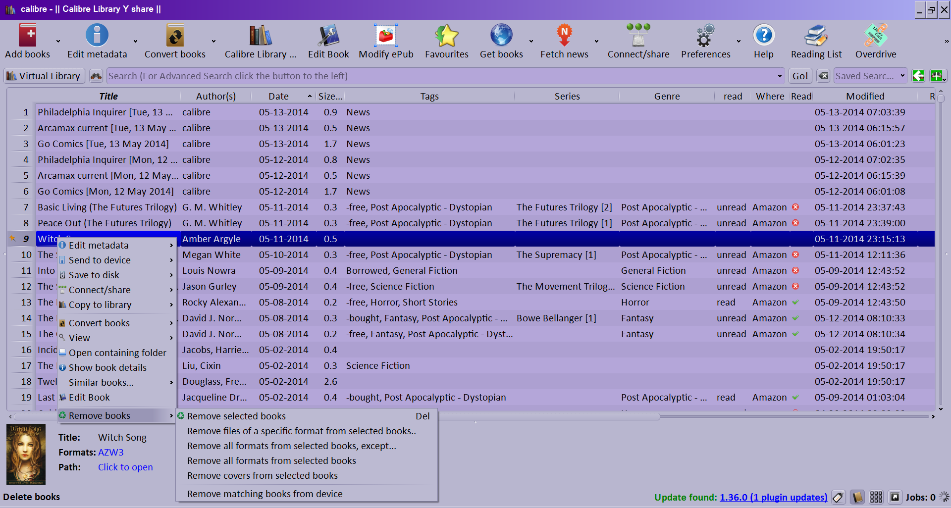 1.) The ability to get read status and progress from the Reading app whenever possible. Either by accessing the database directly or by working with the respective developers (whenever possible) to enable to functionality. This would allow for CC to become a much more potent full-time book manager and launcher. With having access to the read progress, one could open the book in multiple programs and be able to continue where they left off. Finally we could then completely bypass the various built-in book managers of the respective reader apps. 2.) Maintain and sync a mobile library across devices as well as Read and Progress status. Perhaps Dropbox or Google Play could be used for the data and possibly the books or the books could then be grabbed automatically from the Content Server if CC detects that a certain book was added on another device. Anyway I know these suggestions have a very low chance of being implemented, but here's to trying! Keep up the great work! |