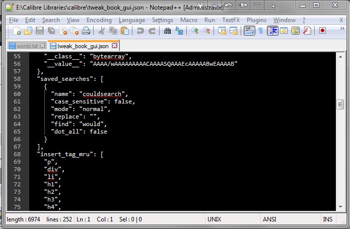 If you have a half decent HTML/XML editor then it may layout json files in a usable fashion. Otherwise I suggest Notepad++ Home (← click) Added : If you're stuck with Notepad only - search for saved_searches see attachment BR Last edited by BetterRed; 05-27-2014 at 08:49 PM. |