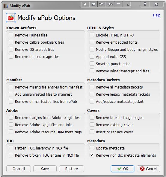 I used to use Modify Epub all the time. But then read that Polish Book did the same thing. Thanks, I will go back to Modify Epub.