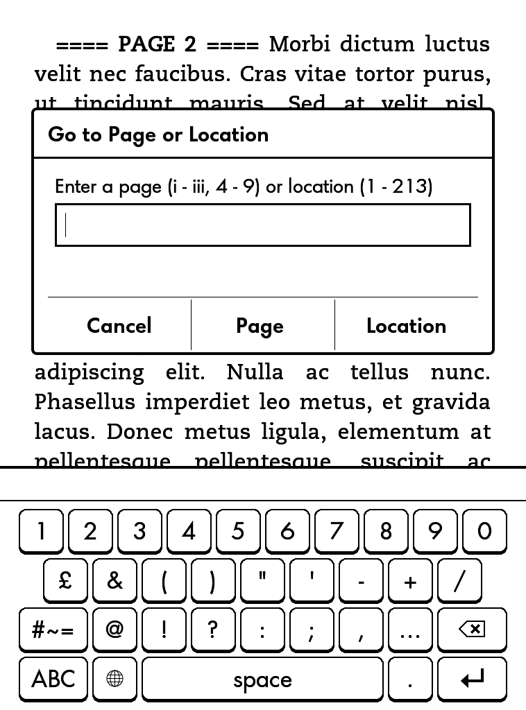 Out of curiosity, I selected Go To > Page or Location and in the Go to Page or Location dialog box both "real page numbers" and locations could be selected. When I did the same with my test book, both pages and locations were being displayed and could be selected also (see screen capture). It looks like that there's either a bug in the latest PW2 firmware that disables the automatic display of page numbers or something is wrong with my particular PW2 or my PW2 settings. However, there doesn't seem to be any user setting to display or hide page numbers. If other PW2 owners read this thread: does your PW display page numbers when you select the menu bar? If so, did you have to enable/disable a particular setting to display it? @KevinH: I'm sorry if I caused you extra work. After all, your code does work fine even with PW2 Kindles. It's just that PW2 Kindles with the latest firmware apparently don't display page numbers. However, page numbers can be selected via the Go To menu. Last edited by Doitsu; 06-28-2014 at 01:41 AM. |