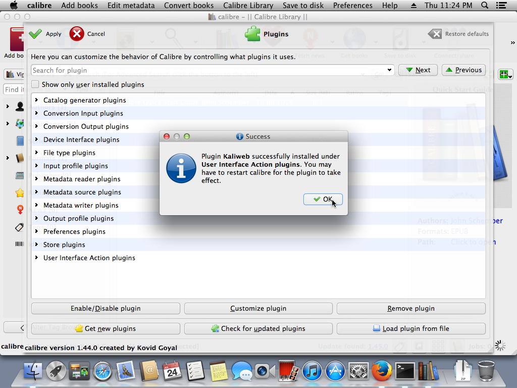 QCocoaView handleTabletEvent: This tablet device is unknown (received no proximity event for it). Discarding event. I wonder what are the differences in running `calibre` and `calibre-debug -g` on OSX? Is there anything I can add to plugin which will run only on OSX so it gets installed and running? I'm happy to explore the differences in calibre-debug and calibre. The only problem I see at the moment is compiling calibre with debugging/print statements on OSX. I never compiled Calibre on OSX, I run it inside of a Virtualbox on my Linux machine and I would prefer if I don't need to go through custom compiles of Calibre on OSX. |
