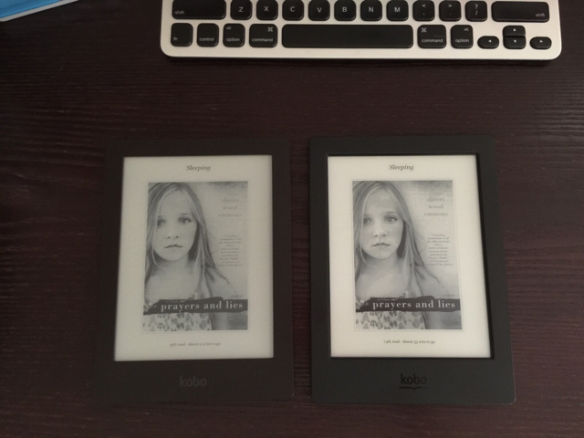 I thought some of you might like to see a direct comparison of the two screens. They are both beautiful, with a slight edge going to the H20 in terms of overall sharpness. But that's just my humble opinion. Aura HD (espresso) on the left, Aura H20 on the right in all photos: Last edited by Fanchee; 10-07-2014 at 02:47 PM. |