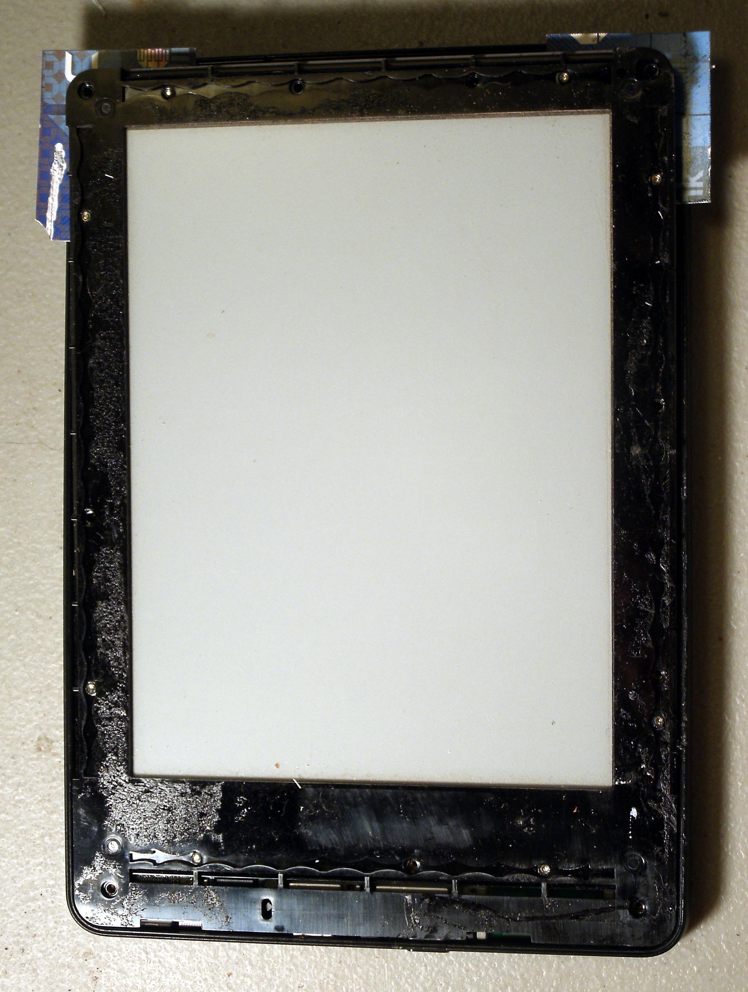 It seems that Amazon ran out of double sided tape after they stopped K4 production. But their glue pot is still full. The highlighted sections are in the same order as the pictures attached. peel-1 Starting at an upper corner - Using a thin, plastic tool (or credit card) - Work down one side, work across the top, work down the other side. Leave a trail of <something> (shown, glossy faced cardboard) behind so that the bezel glue doesn't grab the body again. peel-2 Leaving the bottom for the last peel&pry effort, (gently) rip that little sucker off the face of the body. unscrew The Kindle hardware assembly is held in the bottom (or back) case pan by 10, T-5 (torx) socket head screws. The red dots are just below the ones you want to remove. In the following, I did the "right thing" for the wrong reason. Work on these devices long enough and a person has to get lucky sometime. pry-it Using your thin, stiff, plastic tool (or strips of credit card) - - Work up the two upper corners enough so that you can "bridge" the corner radii with the cards. This leaves the e-ink display frame sitting on top of the plastic wedges, which are resting on the top edge of the case pan. Thou shall be gentle from this point on - since bending the e-ink frame is detrimental to the display's operation. It probably will not do the touch screen any good either. ![]() clips I thought I was separating double sided tape, but not so, Amazon is using interlocking, hook style, clips. clip-pts The matching hook style clips on the underside of the e-ink frame. Note that you can't just slide something in there to use as a "release tool". The least of the problems is that the battery is in the way. The worst of the problems is that the display cable is in the way. Rip that up and you have KT2 spare parts. Set aside all thoughts of brute force and reach for the hair dryer. Place Kindle face down on soft cloth, heat outside of the case bottom until it is uncomfortably hot to the touch. Work down either side with more plastic shims - The hot case back will allow the plastic hooks to flex enough to release their hold on the e-ink frame. BIG NOTE: You may have to alternate heating the backside of the case and the working of the shims down the side several times. Expect a few loud, sharp, cracks and pops. Those should be the clips releasing, not your e-ink display / touch screen being destroyed. ![]() bottom-right Here you will find two, unpopulated, pad sites. The serial port connector pad (Kindle functions in red added) and a place for the hardware reset button. bottom-left Here you will find two more, unpopulated, pad sites. One for the power on/off toggle button and one for the switch to enable booting from the USB device. And in the left-most corner of the board, the Wifi antenna. Note that is the right-most corner of the Kindle when looking at the display. usb-adpt This is the 1v8-serial to micro-USB connector, adapter board. Viewed from the underside. Note the "Control Bit" outputs (CB0 ... CB3) - those can be controlled via the USB serial cable and look like just the thing to replace the (non-existent) buttons with. (Well, the USB boot switch connections might be a bit tricky, but the rest should be straight forward.) My next goal is to find a place (hopefully inside) to install this board. - - - - - For another take(down) on the 7th gen. rip-it-apart story, see: https://www.ifixit.com/Teardown/Kind...Teardown/29802 Last edited by knc1; 11-09-2014 at 12:54 AM. |