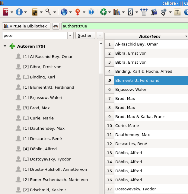 In the meantime (no one ask how) the author field I changed in alphabetical order (status quo, in wrong format LN, FN), see 'Calibre Library'. (Tweaks) author_sort_copy_method = 'NoComma' would have following result, see 'Autoren verwalten'. By clicking on the yellow marking all entries from the author_sort field would get copied to author field - in correct format FN LN. ![]() Quote: