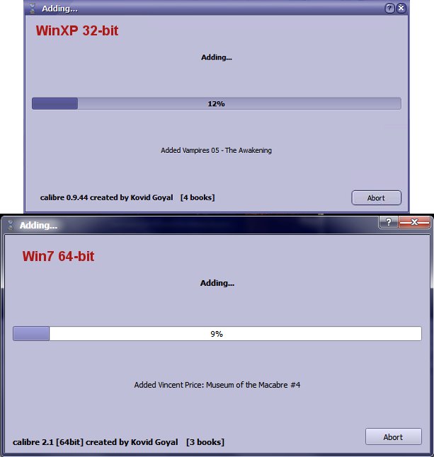 And here is a testimonial as to the speeding up of the Add process ==>> Adding large number of books to Calibre got significantly faster. Thank you Kovid Quote: