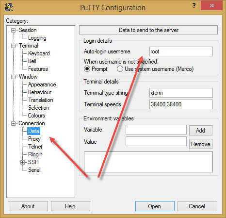 Don't forget to save your session after you add the "root" user as described and before opening the connection