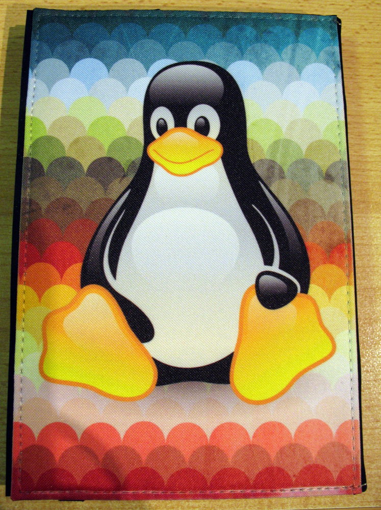 The only nice thing about caseable is that you can print your own stuff on it, so I went with Tux on a random background...