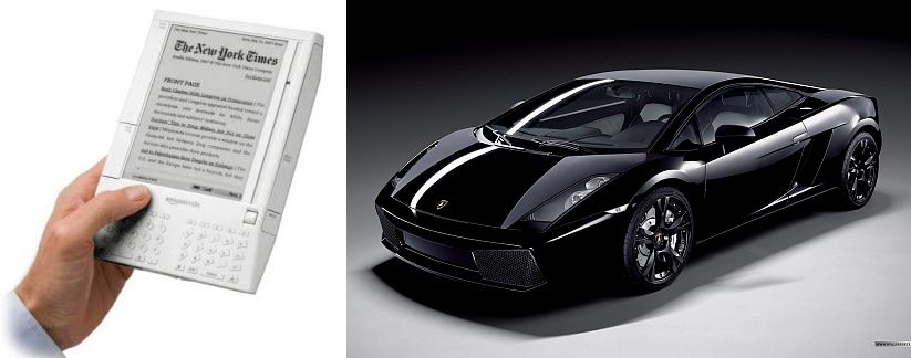 Well, it's actually pretty true. If you look at most Lamborghini designs in the last twenty years or so they are fairly angular with lots of flat plane surfaces... just like the Kindle.
