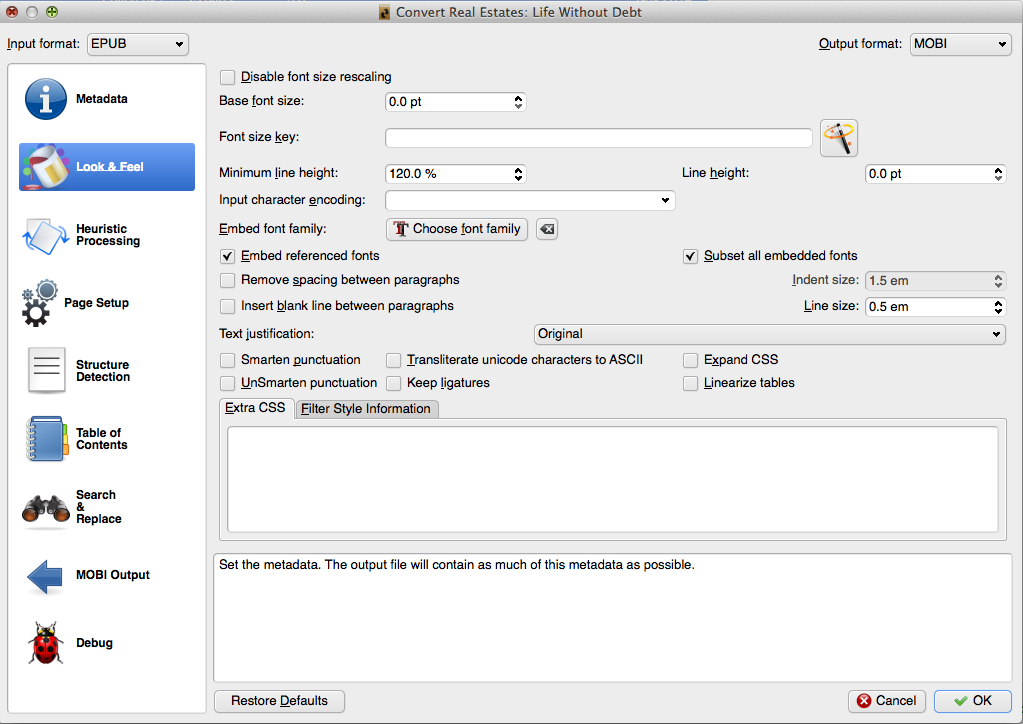 | conversion, embed, epub, font, mobi |