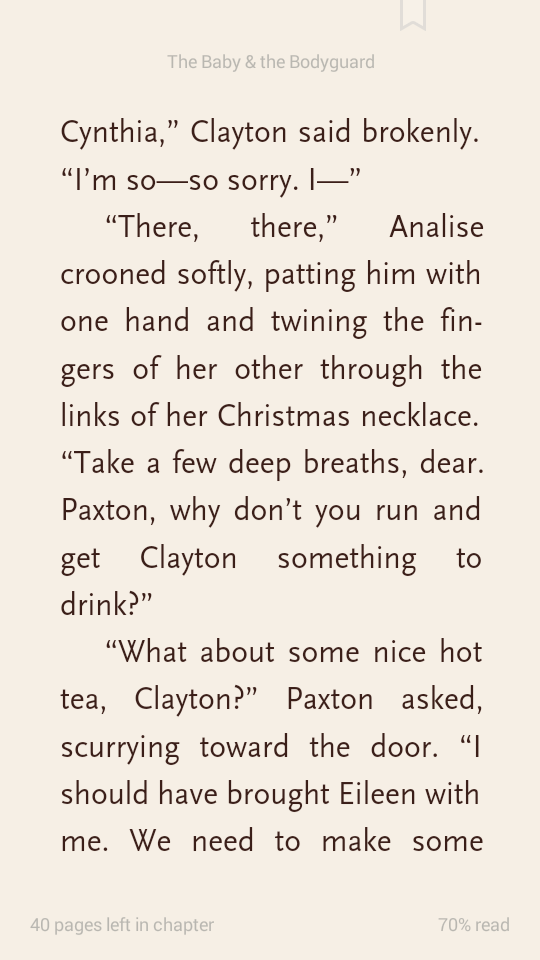 I can't read on my phone though. Its got a fine display with high resolution, its a MotoG, but the screen is just to small. And even on the phone I find the margins to wide. I have the newest version on the phone in case I want an audiobook. I also think that the larger a reader needs to have the font to read, the worse it gets with the display. Which would be annoying as many of us read ebooks partly so we can finally read the words again in the printed word. I know many paperbacks were just getting way to small font for me so ebooks were a saviour for my reading heart. I checked and on my phone it looks exactly as the screenshot Blossom took. 16 lines of text is about what I would need to comfortably read the font. At least for now, who knows down the line. Purple Lady needs a larger font that puts 12 lines of text and that looks really unreadable how it displays it. Do they only test this with very small fonts? Last edited by Atunah; 01-15-2015 at 10:58 AM. |