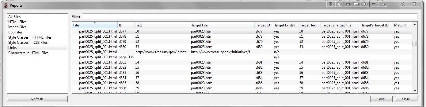 ![]() There's been no mention of Sigil's Links Report. I've 'tried' to use it on books with lots of links to foot notes, references, maps, and hierarchical index entries. It works after a fashion, but... IMO what's really needed are side by side windows. The file with the link on the left, and the file where the target is on the right. Be nice if the two windows could be independently switched between code and preview modes and the link in question was highlighted. Maybe a double click on an entry in the report could pop an entirely separate two pane window rather than using the main window panes. The edit facilities in code view could/should be a subset of the main editor - i.e. just the basics. Also be nice if the list would adjust column widths (Text and Target File) so that a line fitted on the available width. Exclusion of html links, and links with/without matches would be nice to have. Be interested to hear from others who use this feature, particularly on books with lots of links. Maybe my expectations are not aligned to the reports intended use. BR |