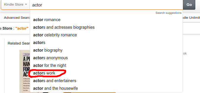 You have to remember that almost all of the people looking at it are going to see it as a thumbnail. And it's too dark as a thumbnail. Yes, ACTING will show up nicely but you have to want more appeal for your cover than just a word. And like adding the guy (in the second version)--no one will see him on the thumbnail. You can just barely see him on the full. Believe me, trying to get my own covers in shape, I know what you're going through and it's tough. You think/hope/wish maybe just a tweak will do it and sometimes that's the case but sometimes you need to start from scratch. The "Cosmos" comment is on the money. My first thought seeing it was that it was a sci-fi novel. And even as a sci-fi novel it could be improved. Most non-fiction covers are pretty bright and they often emphasize the text and the subtitle. Don't be so subtle. Brighten it up. You've got a split second to garner someone's attention. If they don't click on the cover you're history. Now I have to believe in the categories your book is going to be in people will be looking more at the title and subtitle than they would say in mysteries or thrillers, so that's good, but still you want to have everything you can working to your advantage. So what's your book about? Acting, okay. But that's very very very broad. (And your subtitle From "First Audition to Final Bow" is very very broad as well.) Now I get the sense from your title that your book is going to tell me about the process of starting with an audition and then becoming accomplished to the point of completing a performance. Which is all well and good. It's probably what most of the acting books are going to show people. But it could be much more exciting. What you need to be asking yourself is, What are people HUNGRY to know about acting? What do they want to know so bad that only my book is going to be able to give it to them? And you can find this out. With non-fiction books you can go to Amazon's search engine (make sure you're in the Kindle Store--that way you'll know what your competition is) and enter what you're looking for. That tells you what real people (customers with credit cards already in Amazon's files!) are searching for. I went there and put in "acting." A drop-down menu appears with the most sought after search closest to the top. So you see what people are searching for. When I looked at it a title caught my eye ("Acting Onstage and Off") and I went to the book. (see screenshot 149) Then I entered in the search engine: actor And the drop down had: actors work (see 150) So I went there and found a title: Acting for a Living: How to Act Outside Hollywood - Become an Actor; Work in Film, TV & Video; Make it Your Career See how it works? Lastly I went to the thing I would put in: how to be an actor There was only one drop down: how to be an actor And so I went there and it was loaded with titles like: How to be a Happy Actor in a Challenging Business: A Guide to Thriving Through It All So these are your competitors. Will your book's title and cover outshine theirs? That's what it's going to have to do to sell. Here's my shot at a title that would be similar to yours: How To Be An Actor: The Surefire Way to Break into the Acting Business and Stay There The first part "How To Be An Actor" is boring. Yes, but if I want to show up on that search page with people entering "how to be an actor" I want that Search Engine Optimization to find my title. And the subtitle fleshes out what my book is about in more detail. Being new you have to make a big noise. Not tacky or gaudy. Just big. Look at how bright most of those covers are and how big the text is. Outshine them. |