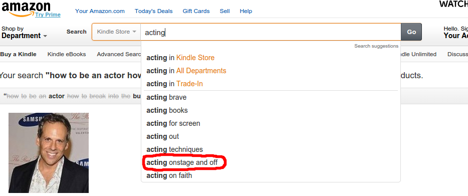 You have to remember that almost all of the people looking at it are going to see it as a thumbnail. And it's too dark as a thumbnail. Yes, ACTING will show up nicely but you have to want more appeal for your cover than just a word. And like adding the guy (in the second version)--no one will see him on the thumbnail. You can just barely see him on the full. Believe me, trying to get my own covers in shape, I know what you're going through and it's tough. You think/hope/wish maybe just a tweak will do it and sometimes that's the case but sometimes you need to start from scratch. The "Cosmos" comment is on the money. My first thought seeing it was that it was a sci-fi novel. And even as a sci-fi novel it could be improved. Most non-fiction covers are pretty bright and they often emphasize the text and the subtitle. Don't be so subtle. Brighten it up. You've got a split second to garner someone's attention. If they don't click on the cover you're history. Now I have to believe in the categories your book is going to be in people will be looking more at the title and subtitle than they would say in mysteries or thrillers, so that's good, but still you want to have everything you can working to your advantage. So what's your book about? Acting, okay. But that's very very very broad. (And your subtitle From "First Audition to Final Bow" is very very broad as well.) Now I get the sense from your title that your book is going to tell me about the process of starting with an audition and then becoming accomplished to the point of completing a performance. Which is all well and good. It's probably what most of the acting books are going to show people. But it could be much more exciting. What you need to be asking yourself is, What are people HUNGRY to know about acting? What do they want to know so bad that only my book is going to be able to give it to them? And you can find this out. With non-fiction books you can go to Amazon's search engine (make sure you're in the Kindle Store--that way you'll know what your competition is) and enter what you're looking for. That tells you what real people (customers with credit cards already in Amazon's files!) are searching for. I went there and put in "acting." A drop-down menu appears with the most sought after search closest to the top. So you see what people are searching for. When I looked at it a title caught my eye ("Acting Onstage and Off") and I went to the book. (see screenshot 149) Then I entered in the search engine: actor And the drop down had: actors work (see 150) So I went there and found a title: Acting for a Living: How to Act Outside Hollywood - Become an Actor; Work in Film, TV & Video; Make it Your Career See how it works? Lastly I went to the thing I would put in: how to be an actor There was only one drop down: how to be an actor And so I went there and it was loaded with titles like: How to be a Happy Actor in a Challenging Business: A Guide to Thriving Through It All So these are your competitors. Will your book's title and cover outshine theirs? That's what it's going to have to do to sell. Here's my shot at a title that would be similar to yours: How To Be An Actor: The Surefire Way to Break into the Acting Business and Stay There The first part "How To Be An Actor" is boring. Yes, but if I want to show up on that search page with people entering "how to be an actor" I want that Search Engine Optimization to find my title. And the subtitle fleshes out what my book is about in more detail. Being new you have to make a big noise. Not tacky or gaudy. Just big. Look at how bright most of those covers are and how big the text is. Outshine them. |