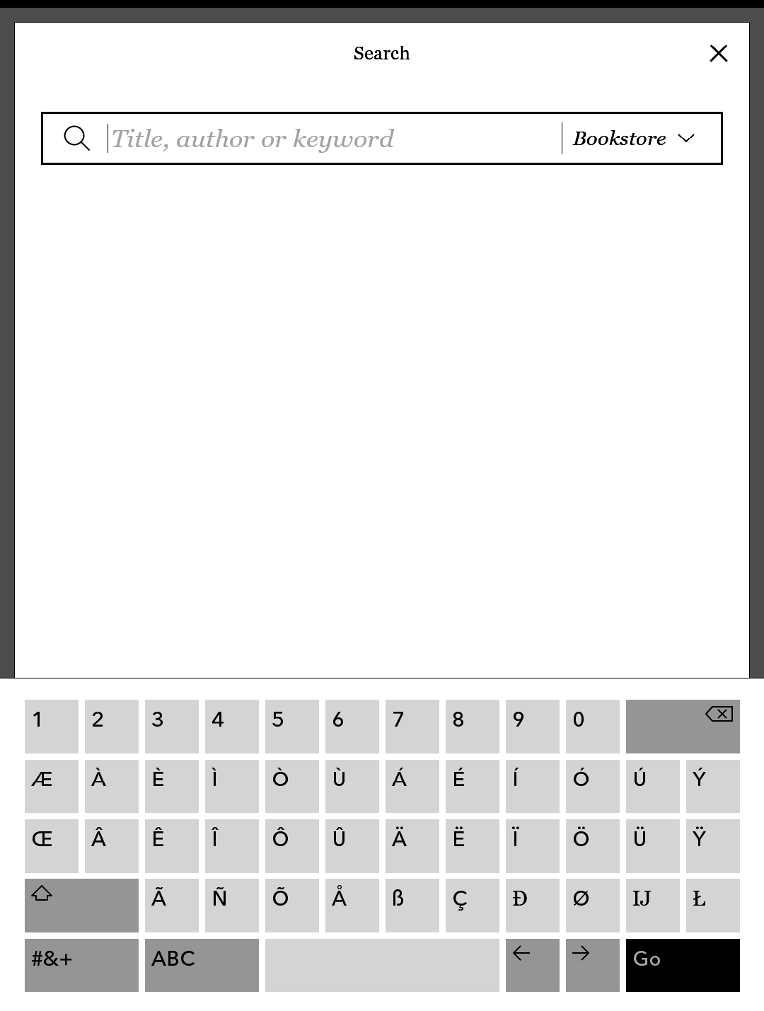 Attached screenshots of the five different keyboards (main upper and lower, symbols, accents upper and lower) on the Aura H2O when using the search. Of course, I just remembered there is a different layout for multi-line line entry fields such as the annotation entry. It only the main keyboard that is different and it replaces the ".com" with a return key. And of course the "Go" changes to "Save" and possibly other words in different places. Last edited by davidfor; 03-19-2015 at 01:38 AM. Reason: Checked the annotations keyboard and confirmed the key change. |
