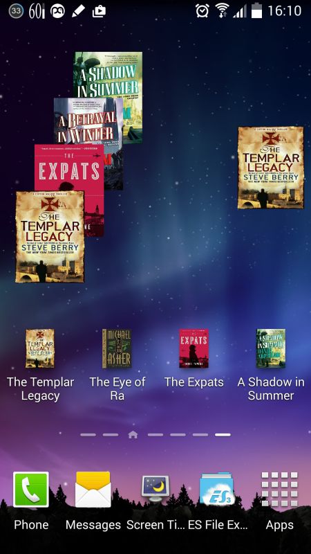 2, 3, 4 & 5. I have seen/used 1x1 widgets where upon adding the widget to the home screen the widget takes the user to the app to select which book to display. The 1x1 widgets are small, but usable and cannot typically be resized. The widget would have to be Removed/Added to select a new book. Adding multiple widgets allows the use to select several books to have quick access to. Play Books also provides a 2x3 widget that displays several books stacked, that can be scrolled through with an upward/downward gesture. The widget is resizable. I find this widget nice... however, I do not generally read multiple books at a time. Perhaps if a reader selects a CC or Custom Group to display books from if a similar stackable/scrollable widget is used? Maybe a button on the widget to manually refresh the displayed books like the ComicRack for Android app uses? .... Issue that comes to mind: A CC widget would be unnecessary for users who only use Play Books unless Play Books is able to be selected as default reader for epub/pdf through CC, which I do not know that it can. Even then if it can, the user must upload the book to Play Books first, and in that case would be better off using the Play Books widgets directly. I've not experience with other reader apps to comment. Here are a few examples of widgets in use. Edit: On a side note - The option to "Clear default reader apps" may not be working. I had selected Mantano as my default reader for epub but CC still remembers and does not allow to changing of the reader app. Last edited by Dhevi; 04-04-2015 at 02:05 PM. |