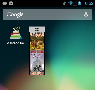 ![]() Some of the reader apps have very nice Home screen widget options and I suppose they're sufficient for anyone who only ever uses a single reader app. I think CC may be even better, though, especially if CC could 'remember' which app was last used to open any particular book. As background I've attached widget screenshots from my Galaxy Note 3 of the offerings from 3 apps - Pocketbook, Moon+ and Mantano. The best I've used have been Pocketbook and Moon+ (unfortunately IMHO Moon+ makes such a mess of css styling that I can't reconcile myself to using it for epubs).