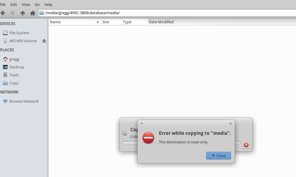 New info: To my shock the computer recognized the ereader. But it would not let me add books. I could add them outside the database file but not within. At first when I tried to even open the folders, the folders would get lock icons on them. Then I managed to get into the Books folder (where the books should be) and when I went to paste a book there I got this screenshot.(38)