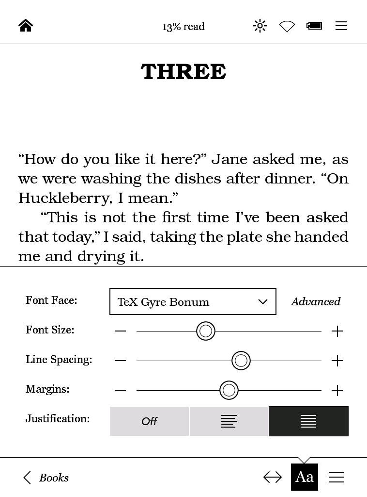And a recommendation, before playing with weight, you should check optical sizes and the book styles of your typeface if there are any. You also have to reboot the device after installing different forms of the same typeface. Caption usually works well with eInk with its lessened details and high x-height. Last edited by GERGE; 05-07-2015 at 04:56 AM. |
