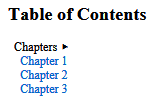 <ul> <li>Colophon</li> <li>Capitoli</li> <li class="spoiler" style="display:none">Capitolo 1</li> <li class="spoiler" style="display:none">Capitolo 2</li> ... <li>Archivio Audio</li> </ul> |