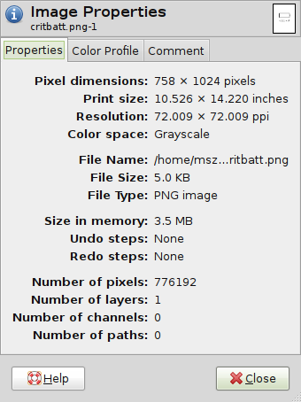 $ file critbatt.png critbatt.png: PNG image data, 758 x 1024, 8-bit grayscale, non-interlaced http://www.imagemagick.org/script/index.php Spoiler: