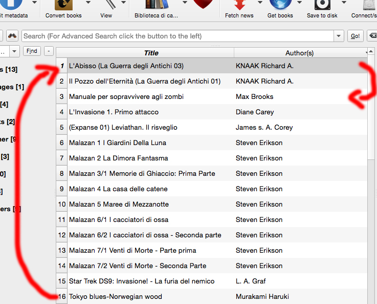 I have 2 quick questions for managing my small library. I hope i'm in the right section of the forum ![]() 1) Is there a way to have in the "main page" (i think is "Authors" ) a custom order of the books that doesn't depend from author name,title ecc.? I just want to switch position of the books like in a proper library. 2)Is there a way to pile series book ? Let's say i have the serie of harry potter and i want that in my library is showed as "Harry Potter" and not all the seven books so that i have a compact view of my library. I know i can create "series" but i don't find i way to pile the serie. Thanks