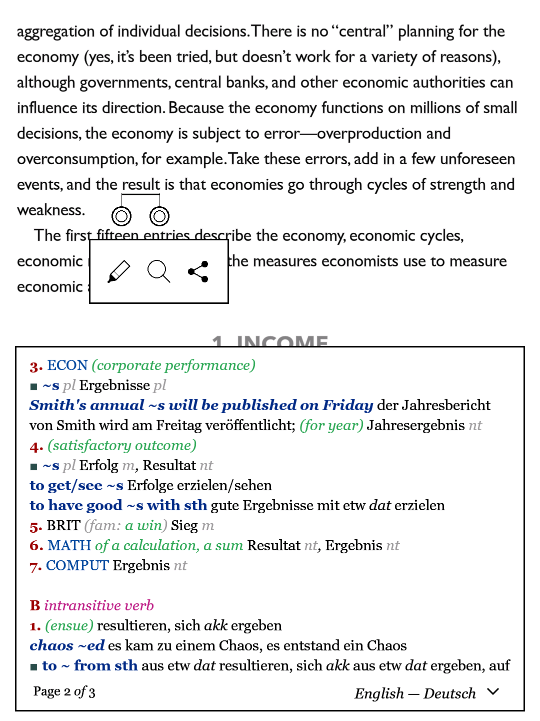 Thanks for the infos you provided. ![]() This gave me a starting point to try out some minor modifications. I played around a bit, using a Hex-Editor, and here are my results. And I must say, now my dictionaries are even more accessible on my Kobo HD. This is a very useful little tweak for those of us who often read foreign texts IMHO. I'm loving it. Note: There's no color on the Kobo display of course, unfortunately.