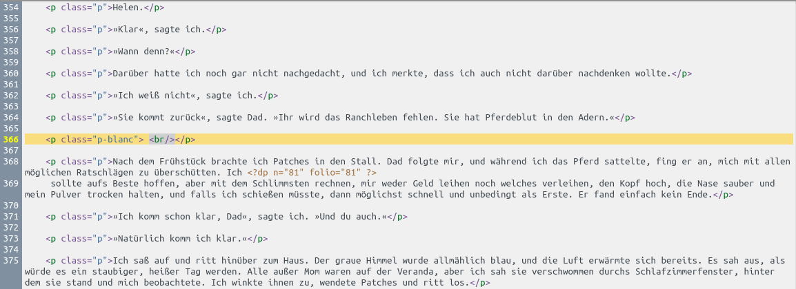 For inspection of the complete stylesheet see here. I just simplified the CSS properties margin-top and margin-bottom in some (selected) rows (63, 64 & 67, 68) to margin and set the value to zero. These seem me to be those that relate to the text. The distinction between top and bottom seems me now superfluous. Anyway, the result is at least OK. Book viewer (Optimized lines) So I think the book is readable (by design). I'm still quite young. ![]() Why did you set there a point in the code. Accidentally? I didn't. Code: